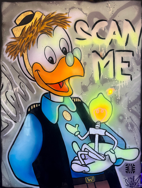 Unsere Kunstwerke werden mit einem NFC-Chip ausgestattet und dadurch fälschungssicher, handelbar und einzigartig gemacht. Auch können die Werke parallel in der Blockchain existieren und sind dadurch physisch und mit der digitalen Welt verknüpft.